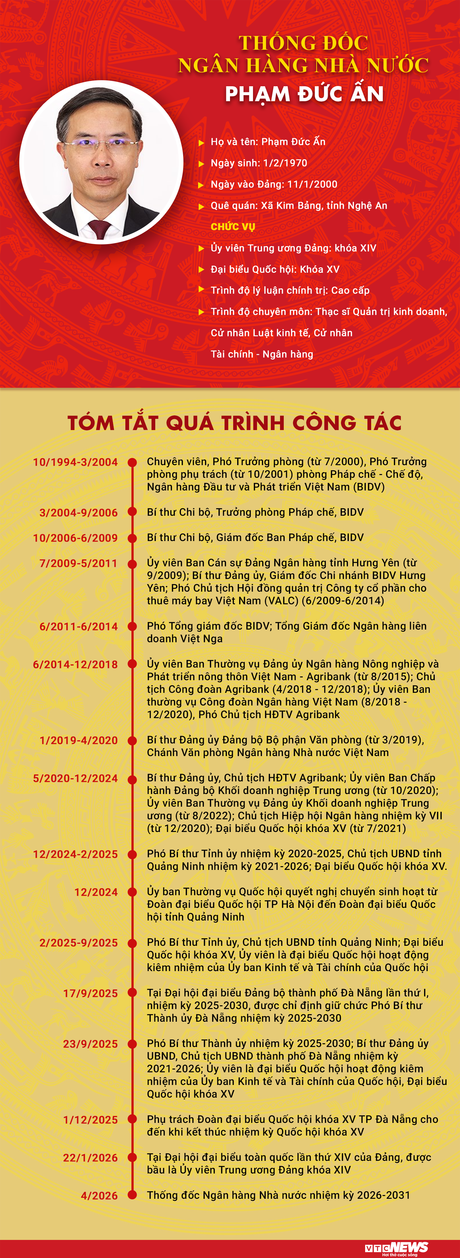 Infographic: Sự nghiệp Thống đốc Ngân hàng Phạm Đức Ấn