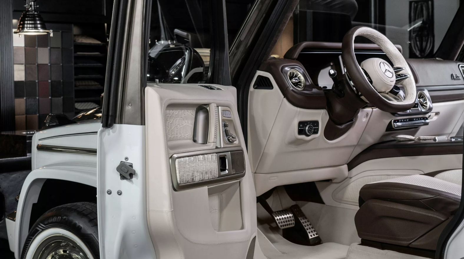 Không kém phần dị biệt, nội thất sử dụng da cá sấu Himalaya, loại vật liệu hiếm – vốn nổi tiếng trên túi Birkin của Hermès với giá có thể lên đến hàng trăm nghìn USD. Chất liệu này được bọc trên ghế trước và ghế giữa phía sau, tạo nên không gian gần như “độc bản”. Phần còn lại kết hợp da nâu – trắng và Alcantara phủ trần, hoàn thiện theo phong cách thủ công.