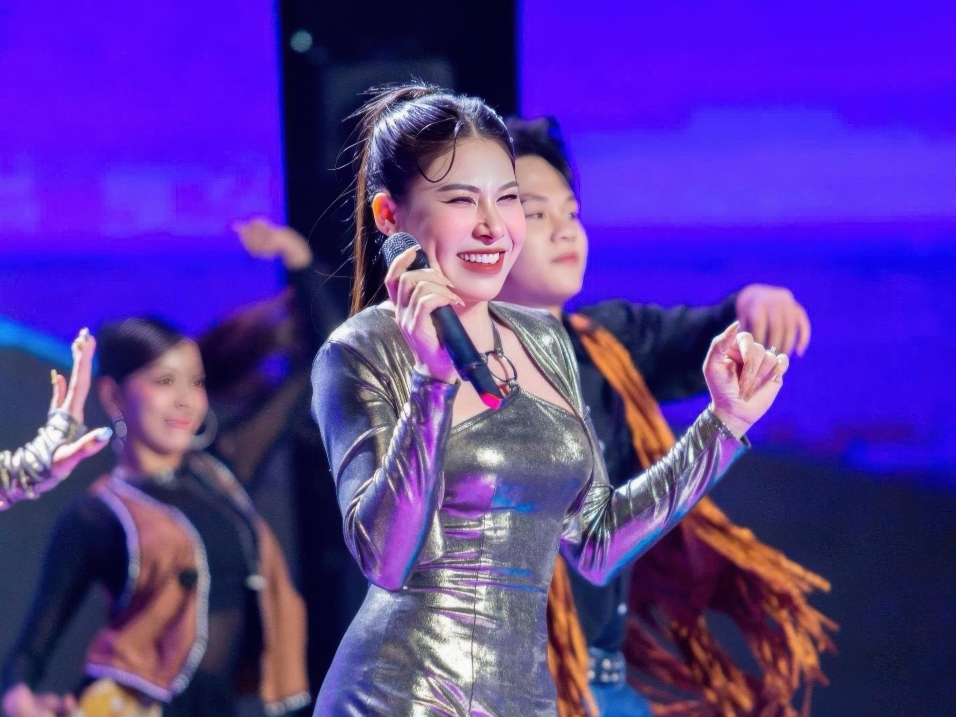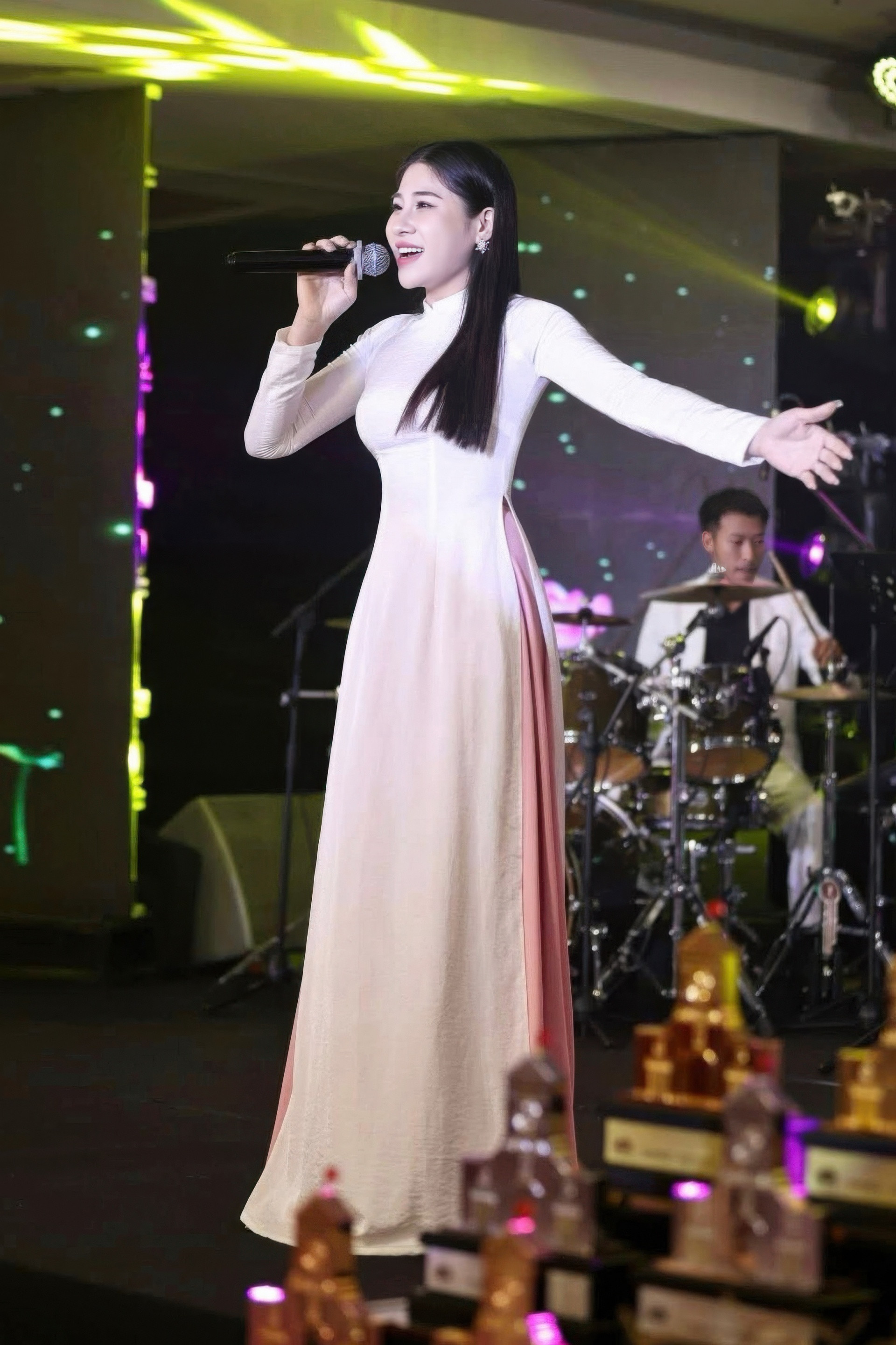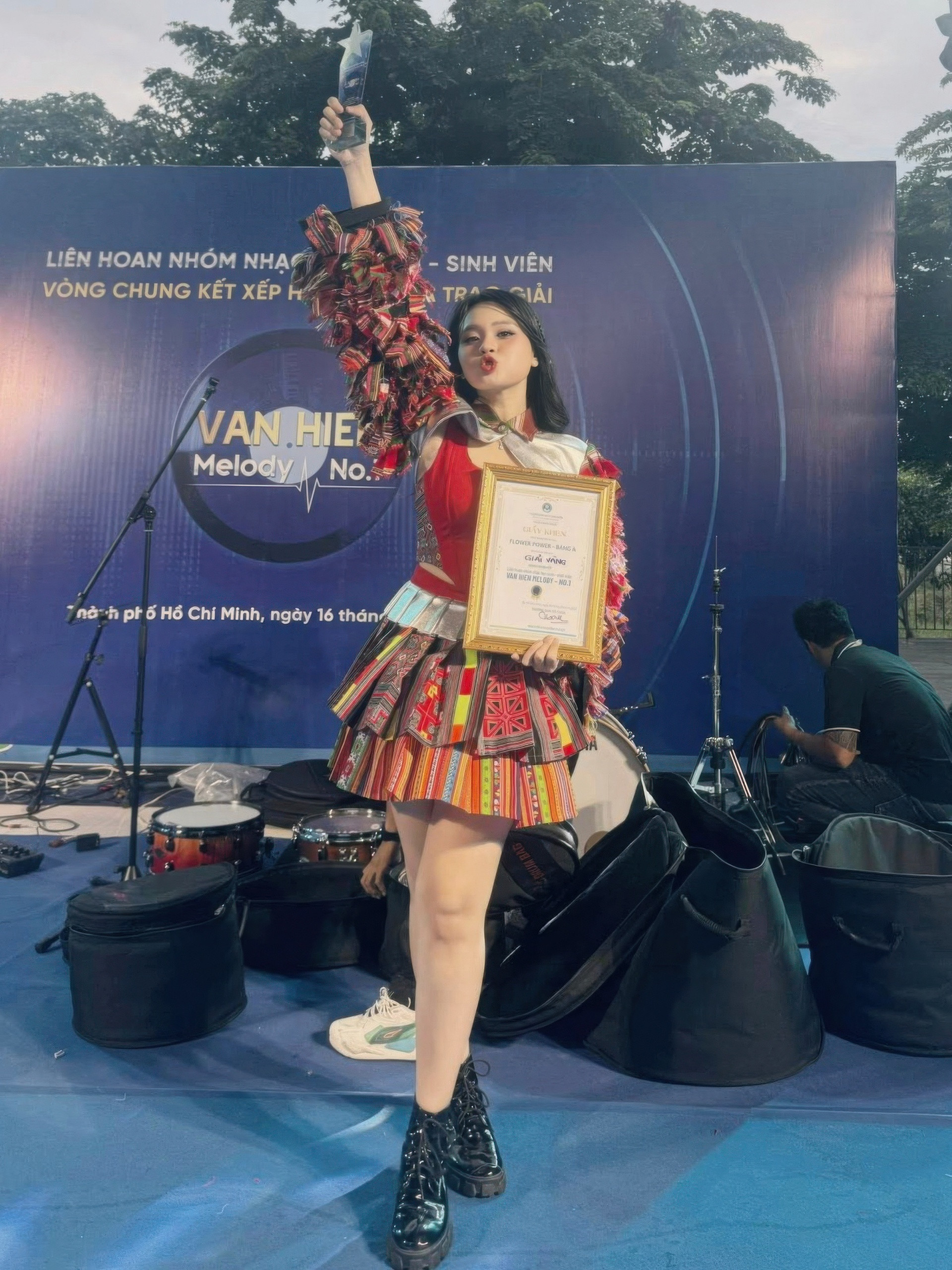 Giọng ca 21 tuổi trình diễn tại trường.