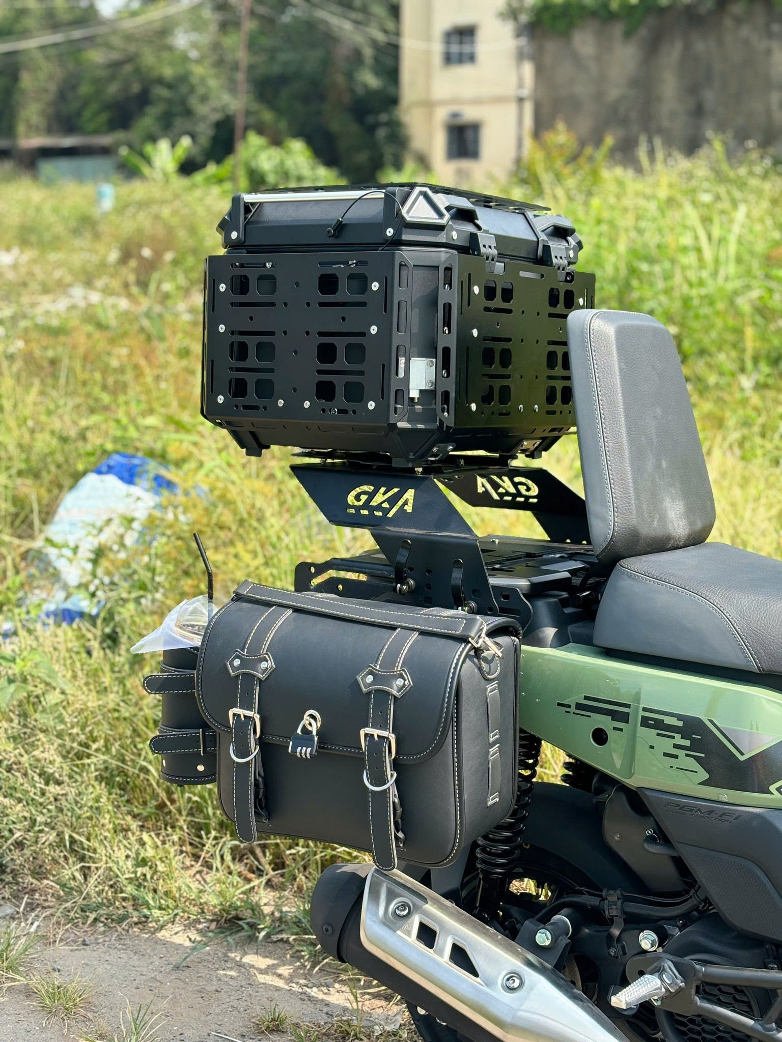 Một điểm đáng chú ý là sau khi đưa về Việt Nam, đại lý đã đầu tư trang bị, gắn thêm khá nhiều phụ kiện chính hãng như thùng chứa đồ phía sau dạng khung kim loại, túi treo hai bên, giá chằng đồ và bàn gập bên hông. Những chi tiết này khiến mẫu xe mang dáng dấp của một phương tiện phục vụ đi dã ngoại, cắm trại hơn là một chiếc tay ga đi phố thông thường.